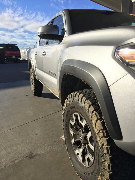 I'm at 15.4 on 275/65/18 on a leveling kit with mudders. 3rd gen guys on 285's. If you are looking at replacing your tires or wheels for your toyota tacoma,. 3rd gen tacoma long travel +2 race series. I'm hoping a little lift up front will fix this rubbing problem.